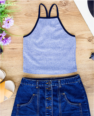 Top corto de algodón orgánico con botones delanteros y detalle fruncido. Fresco, fácil de combinar y muy cómodo.